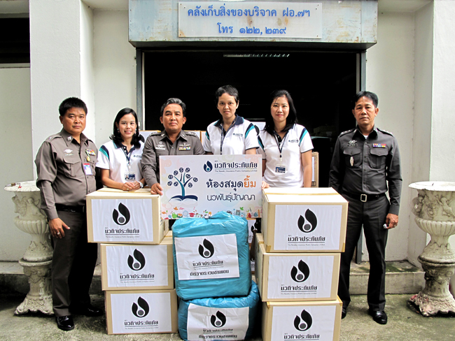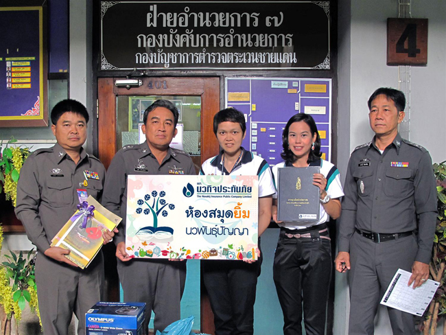 นางสาวจารุวรรณ จับจำรูญ ผู้อำนวยการฝ่ายธุรการ บริษัท นวกิจประกันภัย จำกัด (มหาชน) และพนักงานรวมน้ำใจมอบสารานุกรมไทยสำหรับเยาวชน โดยพระราชประสงค์ในพระบาทสมเด็จพระเจ้าอยู่หัว จำนวน 440 เล่ม หนึ่งกิจกรรมในโครงการ "นวพันธุ์ปัญญา" เพื่อส่งเสริมให้เยาวชนค้นคว้าหาความรู้พื้นฐานในสาขาวิชาต่างๆ ด้วยตนเอง พร้อมด้วยอุปกรณ์การเรียนการสอน เครื่องเขียน เครื่องเล่นดีวีดี และหนังสือเสริมทักษะสำหรับเยาวชนแก่โรงเรียนตำรวจตระเวนชายแดน 8 แห่งในพื้นที่จังหวัดยะลา ปัตตานี และนราธิวาส โดยมี พ.ต.ท. สนิท ศรีวงษ์ทอง รอง ผกก. ฝอ.7 บก. อก. บช. ตชด. เป็นผู้รับมอบ ณ กองบัญชาการตำรวจตระเวนชายแดน