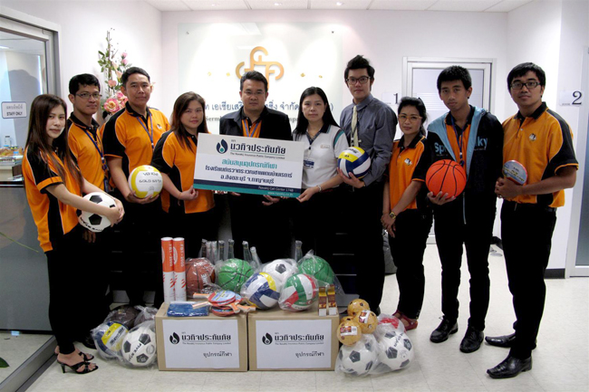 คุณรวีวรรณ ชัชวลิต รองผู้จัดการ แผนกบริการธุรกิจสถาบันการเงิน ฝ่ายการตลาด บริษัท นวกิจประกันภัย จำกัด (มหาชน) เป็นตัวแทนมอบอุปกรณ์กีฬาให้กับ คุณสัญชัย เจริญทอง ผู้จัดการฝ่ายประกันภัย บริษัท เอเซียเสริมกิจลีสซิ่ง จำกัด (มหาชน) เพื่อนำไปบริจาคให้นักเรียนโรงเรียนตำรวจตระเวณชายแดนบ้านเรดาร์ อ. สังขละบุรี จ. กาญจนบุรี