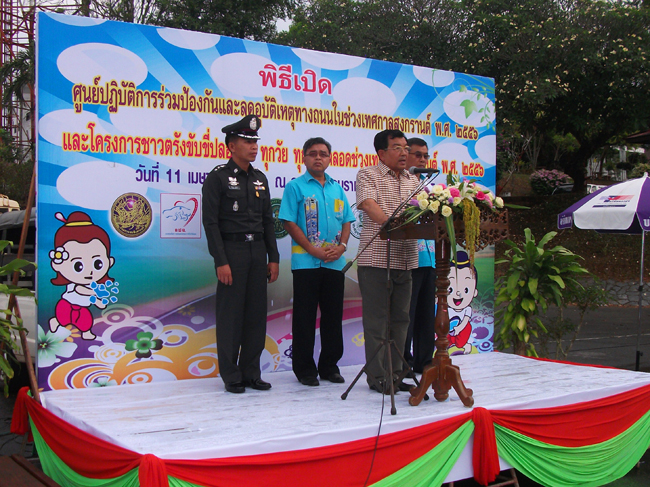 นายสันติ ศิริมงคลมิตร ผู้จัดการ บริษัท นวกิจประกันภัย จำกัด (มหาชน) สาขาย่อยตรัง ผู้แทนบริษัทฯ ร่วมกิจกรรม “ขับขี่ปลอดภัย ประกันภัยห่วงใยคุณ” จัดขึ้นโดย แขวงการทางตรัง อาสาสมัคร-ป้องกันภัยฝ่ายพลเรือนเทศบาลนครตรัง (อปพร.) สำนักงานคณะกรรมการกำกับและส่งเสริมการประกอบ-ธุรกิจประกันภัย (คปภ.) จ. ตรัง และบริษัทประกันวินาศภัย ร่วมรณรงค์ให้ประชาชนและนักท่องเที่ยวตระหนักถึงการขับขี่อย่างปลอดภัยไร้แอลกอฮอล์ เพื่อลดอุบัติเหตุในช่วงเทศกาลสงกรานต์