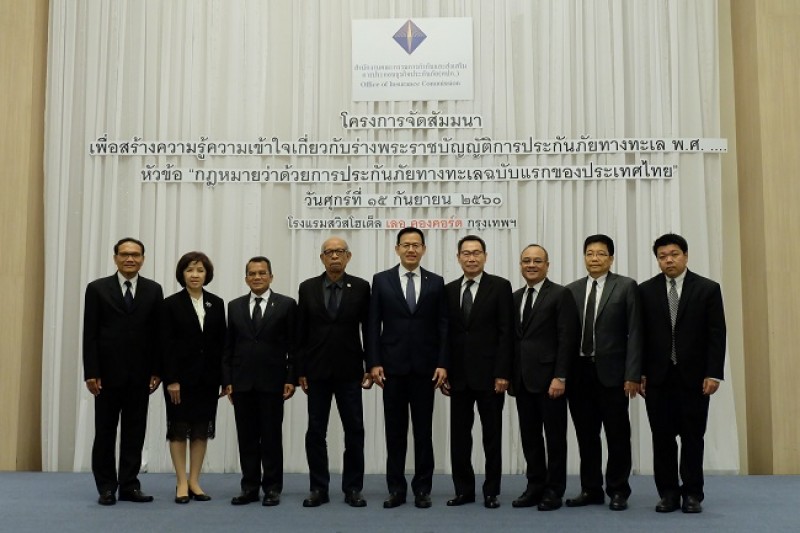 ดร.สุทธิพล ทวีชัยการ เลขาธิการคณะกรรมการกำกับและส่งเสริมการประกอบธุรกิจประกันภัย (คปภ.) เปิดเผยว่า สำนักงาน คปภ. ได้เดินหน้าสร้างความรู้ความเข้าใจเกี่ยวกับร่างพระราชบัญญัติการประกันภัยทางทะเล พ.ศ. ... ด้วยการจัดสัมมนาในหัวข้อ “กฎหมายว่าด้วยการประกันภัยทางทะเลฉบับแรกของประเทศไทย” เมื่อวันที่ 15 กันยายน พ.ศ. 2560 ณ โรงแรมสวิสโซเทล เลอ คองคอร์ด กรุงเทพมหานคร โดยมีคณะผู้บริหารสำนักงาน คปภ. ผู้แทนสำนักงานศาลยุติธรรม สมาคมประกันวินาศภัยไทย สมาคมนายหน้าประกันภัยไทย บริษัทประกันวินาศภัย ผู้แทนกรมเจ้าท่า กรมสนธิสัญญา สภาผู้ส่งสินค้าทางเรือแห่งประเทศไทย สมาคมเจ้าของเรือไทย สมาคมเจ้าของเรือและตัวแทนเรือกรุงเทพ สมาคมผู้รับจัดการขนส่งสินค้าระหว่างประเทศ ผู้แทนภาคประชาชน เข้าร่วมการสัมมนาจำนวนกว่า 250 คน