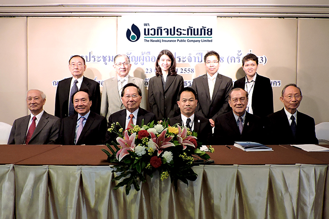 นายสุจินต์ หวั่งหลี ประธานกรรมการ และ นายปิติพงศ์ พิศาลบุตร ประธานกรรมการบริหาร พร้อมด้วยคณะกรรมการ บริษัท นวกิจประกันภัย จำกัด (มหาชน) ร่วมแถลงผลการดำเนินงานปี 2557 ในการประชุมสามัญผู้ถือหุ้นประจำปี 2558 ณ ห้องแกรนด์ฮอล บางกอกคลับ สาธรซิตี้ทาวเวอร์ โดยมีมติอนุมัติจ่ายปันผลในอัตราหุ้นละ 3.32 บาท ซึ่งจ่ายในรูปของเงินสดในอัตราหุ้นละ 3 บาท และหุ้นสามัญเพิ่มทุนในอัตรา 31 หุ้นเดิม ต่อ 1 หุ้นปันผล หรือคิดเป็นอัตราหุ้นละ 0.32 บาท มีกำหนดจ่ายเงินปันผลในวันที่ 18 พฤษภาคม 2558