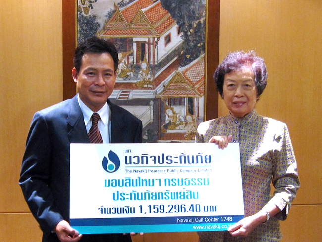 คุณสมบูรณ์ นภาแจ่มจันทร์ รองผู้อำนวยการฝ่ายการตลาด บริษัท นวกิจประกันภัย จำกัด (มหาชน) มอบค่าสินไหมทดแทนแก่ คุณสุวรรณา เดชรุ่งเรือง กรรมการที่ปรึกษา บริษัท ส. ชัยปรีดา จำกัด ผู้ประกอบการโรงแรม วีว่า ซึ่งได้รับความเสียหายจากเหตุการณ์น้ำท่วมภาคใต้ ในอำเภอหาดใหญ่ จังหวัดสงขลา ตามกรมธรรม์ประกันภัยทรัพย์สิน เป็นเงินจำนวน 1,159,296.40 บาท เมื่อวันที่ 23 มีนาคม ที่ผ่านมา