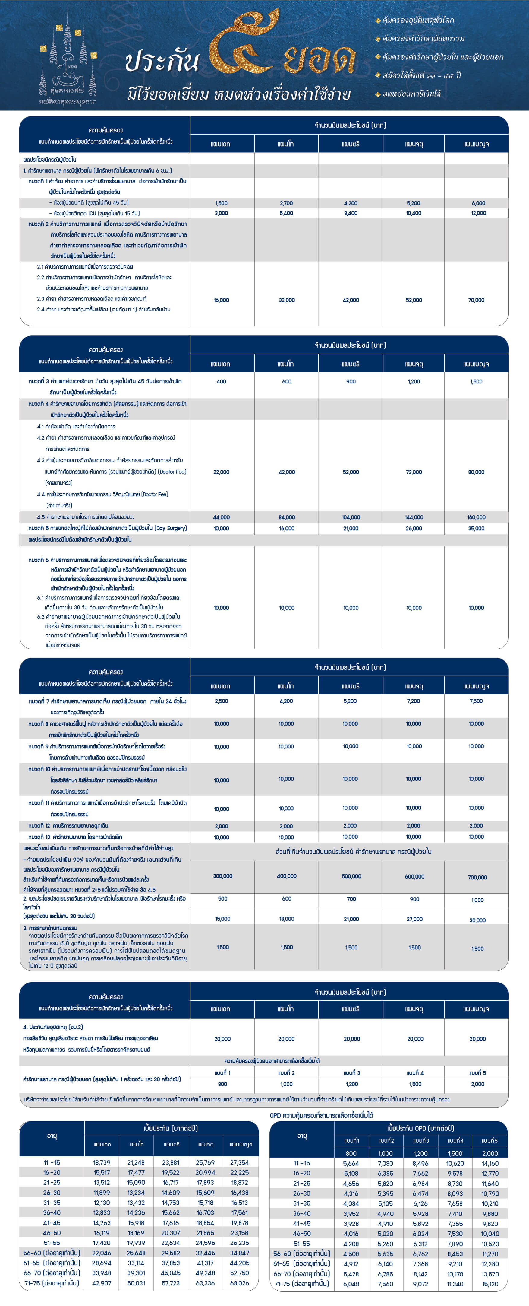 2. ชื่อแผนประกัน ๕ ยอด เป็นชื่อแผนทางการตลาดของกรมธรรม์ประกันภัยสุขภาพและอุบัติเหตุนวกิจส่วนบุคคล