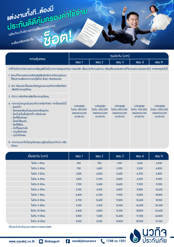 2.ชื่อแผนประกันผลิตภัณฑ์บริหารความเสี่ยงงานแต่งงาน เป็นชื่อแผนทางการตลาดของกรมธรรม์ประกันภัยสำหรับผู้จัดงาน (Event Cancellation Insurance)