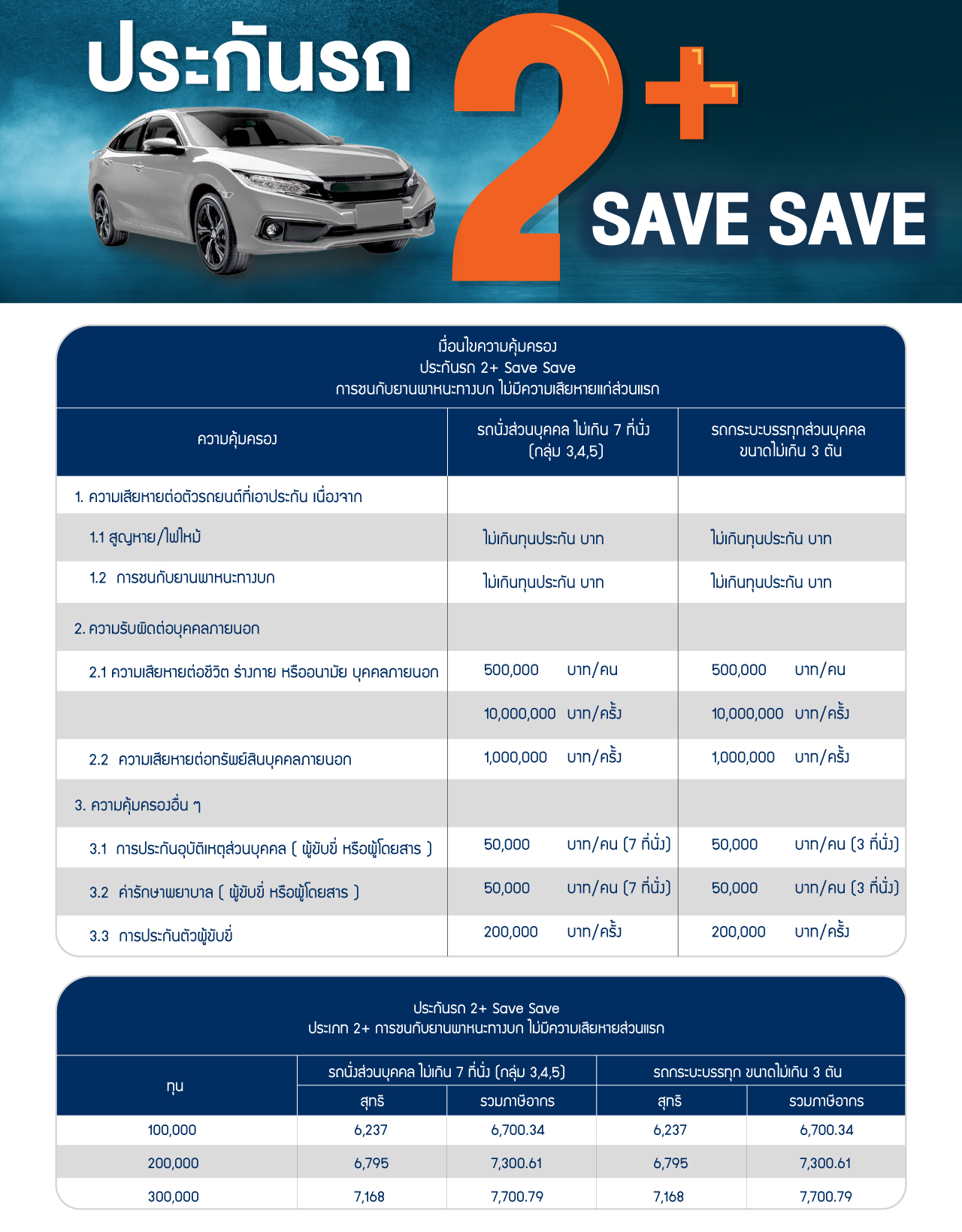 1. ชื่อแผนประกันรถ2+ SAVE SAVE เป็นชื่อแผนทางการตลาด